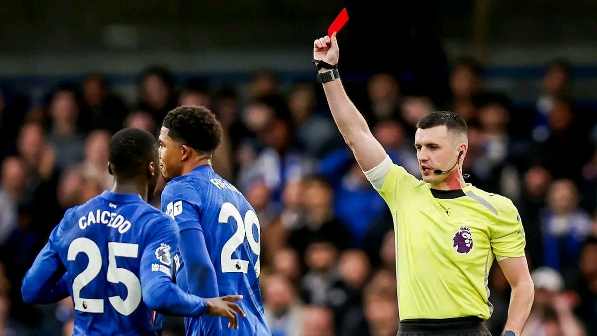 Then Marc Cucurella at Fulham in January, a red card that arrived in the 22nd minute and forced Chelsea to play more than an hour with ten men at Craven Cottage. Moises Caicedo rounded off the set against Arsenal at the end of November, his studs planted into the ankle of Mikel Merino in a challenge that looked bad in real time and even worse on the pitchside monitor. And now Fofana.